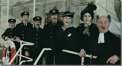 Et vogue le navire, Federico Fellini (1984), avec Freddie Jones, Barbara Jefford, Pina Bausch : Été 1914. D'élégantes personnalités montent à bord du «Gloria». Le navire transporte les cendres de la cantatrice Edmée Tetua vers les eaux de son île natale. Les jours passent. Après une fausse séance de spiritisme où la défunte apparaît, des réfugiés serbes sont recueillis à bord, alors qu’un cuirassé austro-hongrois croise au large. Vendredi 6 à 13h45, lundi 9 à 15h45
