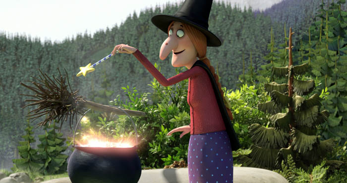 - La sorcière dans les airs de Max Lang et Jan Lachauer ( Lettonie ) en vf : une gentille sorcière et son chat campent près d’un lac. La sorcière concocte joyeusement des potions avec ce qu’elle trouve autour d’elle. Quand elle ajoute des champignons rouges, le chaudron se met à déborder et le bouillon explose. Le bruit réveille alors un dragon qui dormait dans les parages. Comme le temps se gâte, la sorcière et le chat décollent et fendent gaiement les airs sur leur balai. Mais ils ignorent que le dragon s’est lancé à leurs trousses !