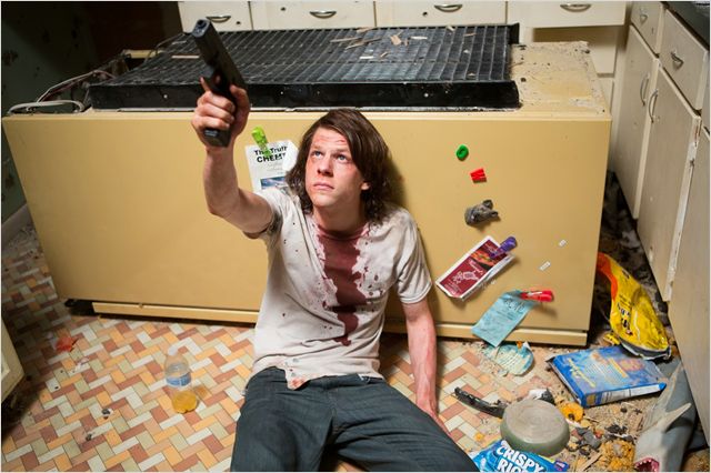 L’aspect comique du film est du coup assez succinct et se résume au contre-emploi grotesque de John Leguizamo en dealer blanc nounours et au contraste entre l’innocence et l’apparence inoffensive du loser face à la force de frappe mise en place pour l’abattre. D’ailleurs, le film se joue constamment de ce contraste, offrant à Jesse Eisenberg quelques répliques bien troussées entre ses prises de conscience et sa phase « je baisse les bras ». Petite plus-value, cette mélancolie qui nimbe la besogne et qui va permettre de décliner à l’infini les ruses pour évincer les méchants dans un défoulement jubilatoire.