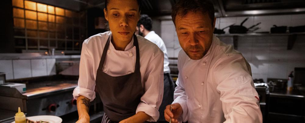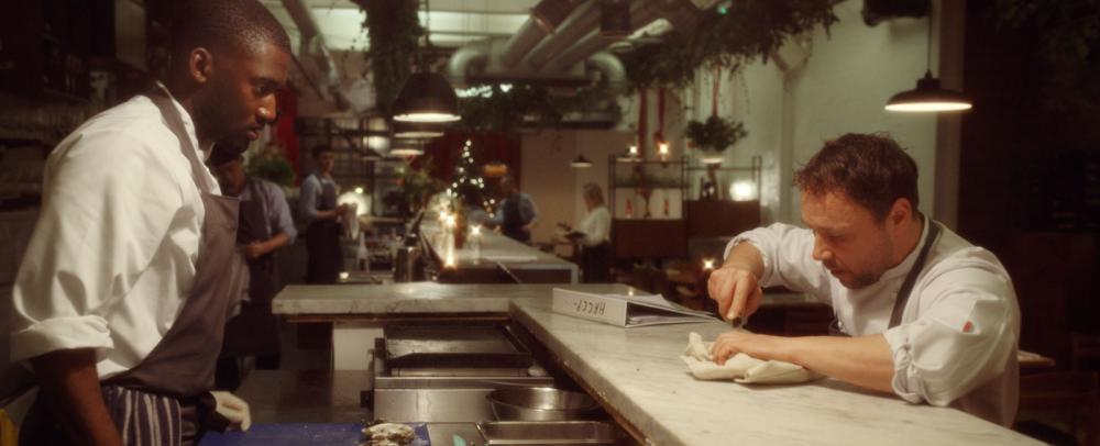 The Chef est avant tout un défi technique et une performance d’acteurs. Il se tourne en un plan-séquence, comme Victoria de Sebastian Schipper en 2015. Après des répétitions et deux jours de tournage, l’équipe arrive à la prise parfaite. Philip Barantini adapte son court-métrage avec l’idée de montrer les coulisses d’une brigade de cuisine. Il utilise son expérience, ayant été chef lui-même. Il ajoute le regard des clients, entre les pointilleux, les influenceurs, les touristes de passage, un ami chef cuisinier et une critique gastronomique. Côté cuisine, autour d’Andy le chef (Stephen Graham) se démènent Carly l’assistante (remarquable Vinette Robinson) et de jeunes acteurs performants.