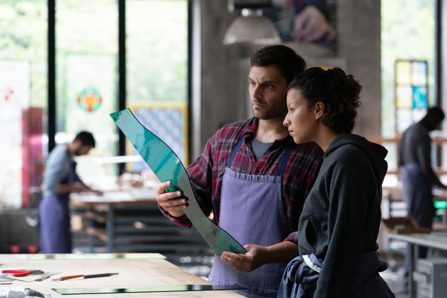 Compagnons présente tous les aspects du film social habituel, une jeune fille en révolte contre la société trouve sa voie dans un métier d’art. C’est pourtant bien plus que cela. D’abord par son casting. Pio Marmaï est juste dans le rôle de mentor, maitre du vitrail. Agnès Jaoui retrouve un personnage humanitaire comme elle les aime. La petite Najaa se fond dans le personnage cent mille volts, en pleine révolte contre une société qui ne lui propose aucun avenir. Passé les quelques moments incontournables et ficelles du genre, c’est tout un univers qui nous est donné à voir. Compagnons se démarque par cette plongée dans une société codifiée, à l’image de la Franc-Maçonnerie.