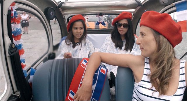 Débarqué sans tambours ni trompettes – la promo n’a pas fait de vagues et les attachés de presse ont été frileux quant à montrer le film à la presse –, Connasse, Princesse des cœurs déboule donc, avec égo plombant et escarpins de 12 cm, dans les salles sombres. Les deux créatrices de la série, Eloïse Lang et Noémie Saglio (coscénariste du moyen Toute première fois), ont choisi pour l’occasion de parachuter leur Connasse dans une quête ultime : la vie superficielle de rentière. Un postulat assez faible, loin d’être à la hauteur du personnage puisqu’on a du mal à croire qu’avec son mépris légendaire et au prix de nombreux efforts, elle ne réalise pas plus tôt que la royauté ne lui convient pas (c’est ringard, vous comprenez).