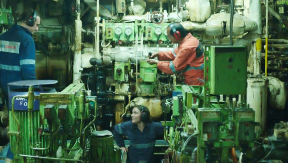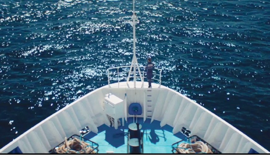 Le ressenti a une place très importante. La caméra filme constamment la mer et les vagues formées par la masse de ferraille. D’un déjà-vu dans certains plans de la nature s’extrait l’évocation de la mer et le goût du voyage amoureux, couplé à la solitude du marin. C’est ce que l’on entend dans la voix off : le journal secret de son triste prédécesseur, qu’il lit d’outre-tombe comme un manuel à Alice. On est porté par ses sentiments, ceux des marins. Qu’est-ce que cela procure d’être enfermé sur un bateau si longtemps ? Des besoins naturels à la libération des escales, on s’y croirait. Cette solitude dans le collectif, accentuée par le fait d’être la seule femme à bord. Cela donne des moments de solidarité, dans ce premier film volontaire, animé de bons sentiments. Néanmoins, les quelques maladresses comme dans les scènes de groupe où les dialogues tombent rapidement, sont contrebalancées par de beaux moments d’effusion collective.