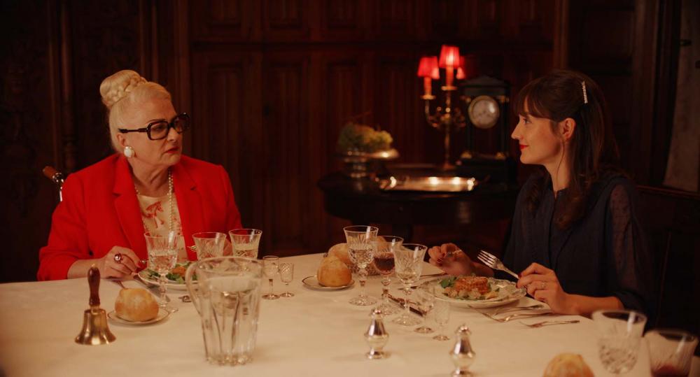 Cet univers particulier, qui lui est propre, peut en déconcerter certains et en enchanter d’autres. Antonin Peretjatko s’appuie sur une nouvelle de Noëlle Renaude, Il faut un héritier croisé avec Tchékhov, Le roman d’une contrebasse pour construire son récit. On pourra chercher les nombreuses références en seconde lecture aux Bronzés, entre autres, avec ce slogan repris par Josiane Balasko « ça va trop vite ». Dans cette balade, le rire l’emporte sur fond de mélange des classes, de vieux garçon, de vieille femme autoritaire, d’une jeune femme en quête d’une vie meilleure, de détective amoureux, et tout un tas de protagonistes désopilants. S’engage entre les deux femmes une lutte de pouvoir, de domination, d’argent, et peut-être de jalousie.