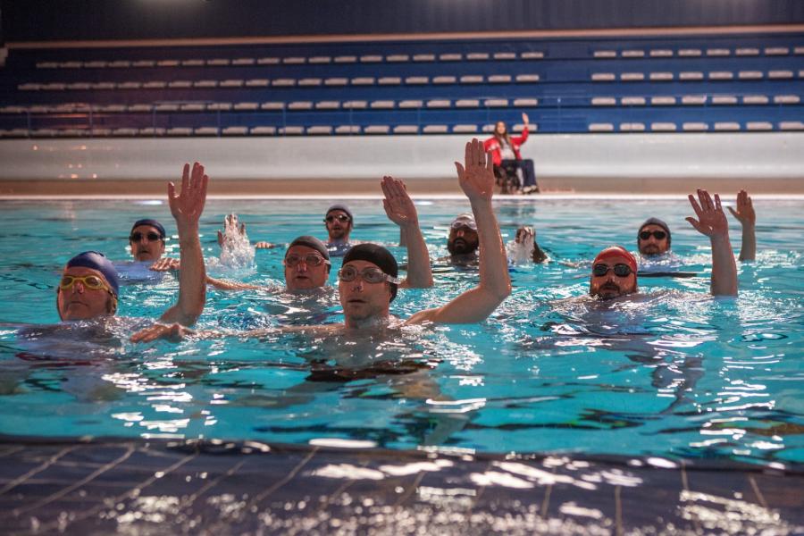 Ce film raconte l’histoire d’un projet qui a tout pour capoter, avec un tournage qui a présenté les mêmes caractéristiques. Lellouche couvait son atypique bébé depuis plusieurs années. Il lui a fallu une énergie colossale pour faire son casting, convaincre les acteurs, les financeurs et il s’en est fallu d’un cheveu que l’entreprise tombe à l’eau (osons le jeu de mots), tant ces hommes mûrs, un peu bedonnants, un peu flasques, même motivés, ont failli tout faire rater parce qu’en vrai, la natation synchronisée est un art impossible ! Et pourtant ils l’ont fait !