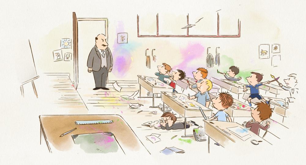 Il développe ces petites histoires reprises de la version papier pour nous parler de l’enfance et de la vie heureuse. Si le décor, les vêtements, sont marqués par les années soixante et une certaine nostalgie d’une époque, Les aventures du Petit Nicolas apparaissent assez modernes sur le fond. Elles déploient toute la malice et la tendresse de l’enfance quand tout devient possible. C’est la confrontation au monde, avec parfois des références aux auteurs, comme l’école copie conforme de celle de Sempé à Bordeaux.