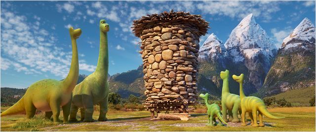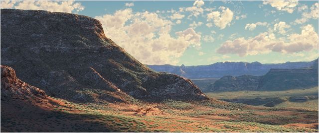 P.S : On a fait beaucoup de recherches pour le film et quand on a exploré la nature sauvage, on s’est dit qu’il fallait confronter Arlo à un monde véritablement hostile ; ce qui n’était pas rien puisqu’il y avait parfois des glissements de terrain, la rivière qui débordait… tout ce qu’on a exploré était réel. Alors on voulait montrer à la fois l’exploration de façon effrayante et puis aussi de façon humoristique avec l’histoire des baies hallucinogènes. Par rapport à l’aspect western, c’est vrai que très tôt, j’ai imaginé des scènes où les dinosaures étaient des fermiers, des ranchers et je revenais souvent sur cette idée. Il fallait garder l’idée de survie inhérente au genre.