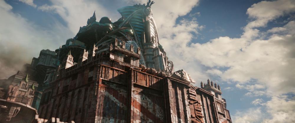 Christian Rivers est responsable des effets spéciaux de King Kong, Lovely Bones, et avant cela il a été storyboarder pour Peter Jackson depuis 25 ans. Il maitrise pleinement son univers en donnant corps et mystère aux villes mouvantes, véritables temple Steampunk. On apprécie les décors urbains envoutants et les paysages de Nouvelle-Zélande, magiques. On se plonge avec délices dans ce monde apocalyptique et ces personnages de science-fiction comme Shrike. C’est une créature de l’Ancien Monde. Il est un mélange de cyborg, d’humain, devenu Terminator, exterminateur, zombie de chair et de métal. Il poursuit Hester pour faire suite à une promesse tenue il y a bien longtemps. A mon sens, c’est une des figures les plus intéressantes du récit. Elle assemble la fin d’un monde rongé par sa propension à s’anéantir et la notion de survie. Il est le lien entre la guerre éclair - appelée La Guerre de 60 minutes - et le Nouveau Monde en gestation.