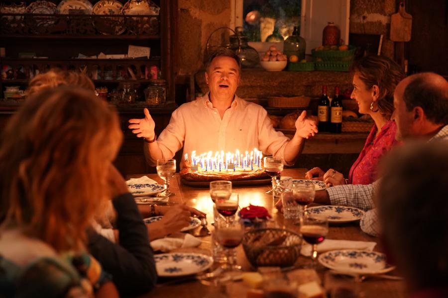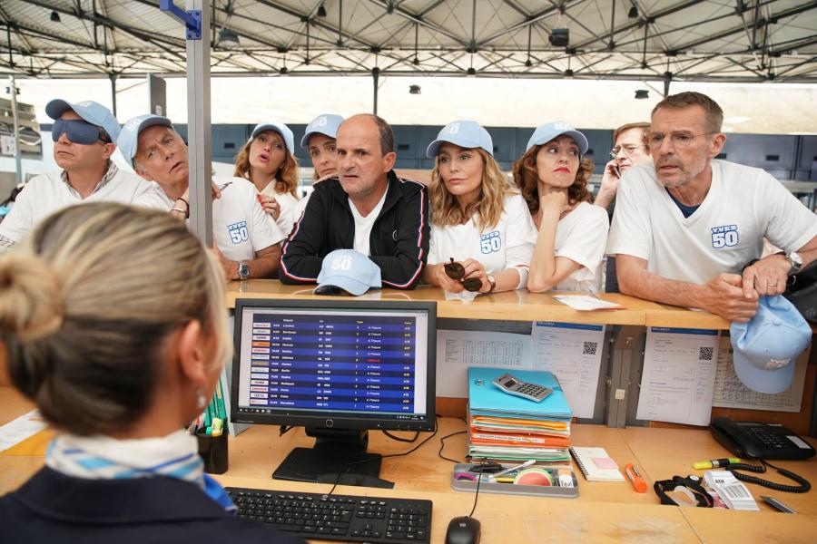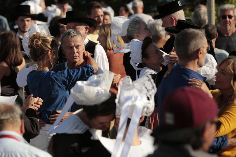 Ce ne sont pas Vincent François Paul et les autres, mais Yves, Antoine, Baptiste, Jean Mich, Laurent et leurs femmes. Ils étaient partis pour découvrir la Grèce au mois d’août, ses plages et son soleil. Ils se rabattent sur la Bretagne, ses plages, ses goélands, son Fest-Noz, un peu de soleil et de pluie. La météo pousse au confinement pour un huis clos à la campagne. C’est l’anniversaire d’Yves, un demi-siècle, c’est important dans la vie d’un homme. Toute la bande tente de trouver des occupations au coin du feu avec la pluie qui toque souvent aux carreaux. La proximité et les années révèlent des blessures parfois profondes, des vérités et des mensonges qui ne font pas bon ménage avec l’esprit des vacances. La tempête ne souffle pas que dehors. Elle provoque un chaos salvateur qui permet à chacun de faire le point sur son existence, d’affronter le passé pour repartir vers l’avenir. Tout s’achève au soleil, au son des binious et des bombardes dans la pure tradition du Fest-Noz.