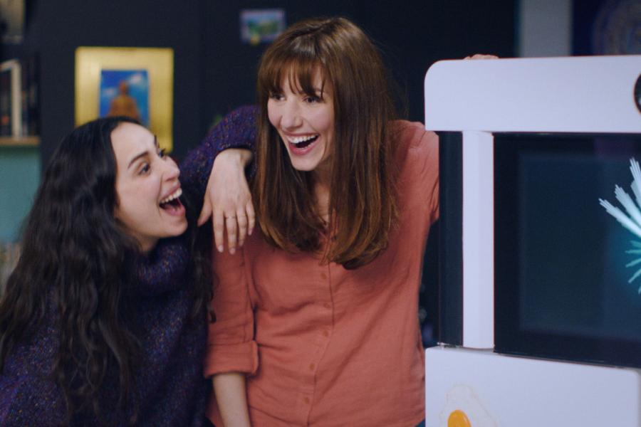 Le sommet de cette dérive, quand la métaphore joue du stradivarius, est un concours de l’Eurovision d’objets connectés. Il confronte Yves et Jérem dans une battle de slam au final ubuesque. Nous sommes sur les terres du burlesque capable de tout, dans l’esprit des Tati et autre Buster Keaton. Le réalisateur utilise une galerie de personnages loufoques bien typés. Jérem, garçon cossard bien sympathique, finit par vendre son âme, la perdre au profit de ce Faust de frigo. L’amour devient le lien révélateur pour le sortir de sa torpeur. Yves, machine au service de l’homme, finit par inverser les rôles et se prendre pour un humain. So, jeune fille en quête de l’élu de son cœur, finit par se retrouver dans une romance à trois.