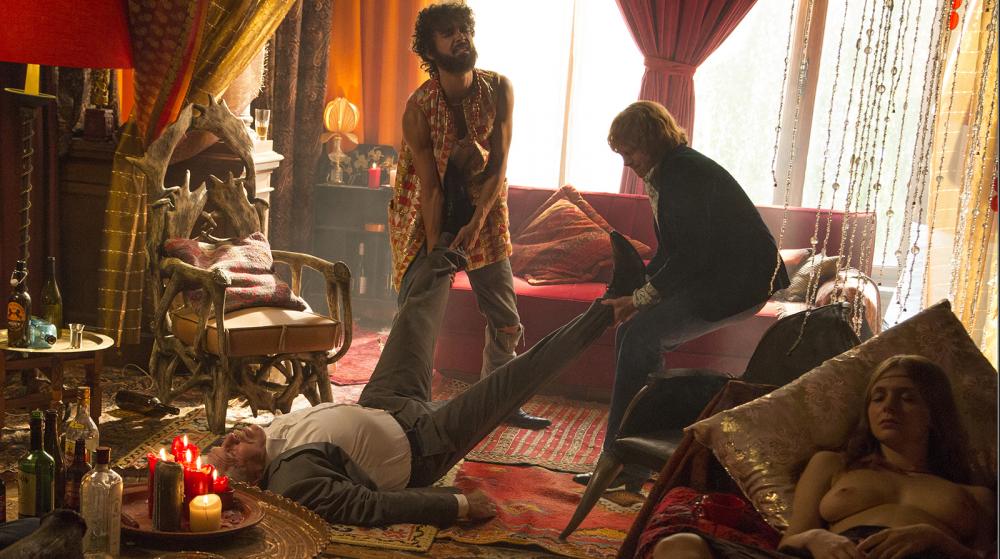 C’est donc sur cette théorie du complot fantaisiste que Moonwalkers se base, en ajoutant une couche supplémentaire à l’énigme: et si le projet fou n’était jamais arrivé aux oreilles de Kubrick pour être finalement réalisé par des individus complètement à côté de la plaque ? C’est dans cette réécriture de complot imaginaire que se retrouve l’agent Kidman, forcé de gérer Jonny et ses amis hippies accros à la drogue d’un côté, et un clan mafieux voulant mettre la main sur l’argent du tournage de l’autre. Une mallette pleine d’argent, de la violence, de la drogue, des filles à moitié nues… Bref, tous les ingrédients d’une bonne comédie d’action loufoque sont réunis. Sauf que dans ce cas précis, une fois la mécanique lancée, la farce se déroule sans véritable surprise, tout juste relevée par quelques clins d’œil appuyés à la filmographie du maître Kubrick, assez maladroits au demeurant.